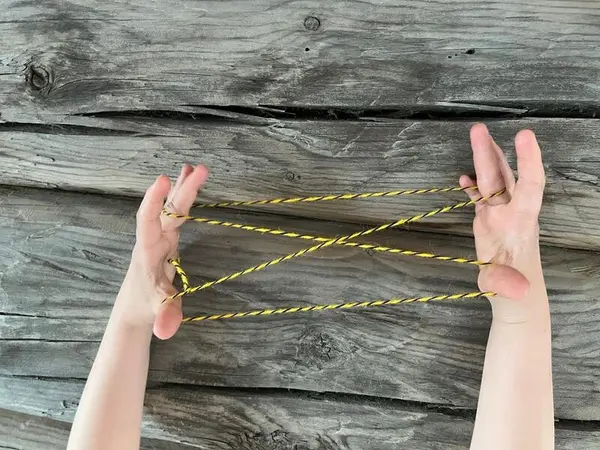 Denne dagen skal vi lære tradisjonelle leker med tråd. Kanskje kan du fingerstrikke? Og visste du at man kan lage mange spennende figurer bare med hendene og en ulltråd? Har man en venn, kan man lage enda flere figurer. Har du hørt om bukser, visp, fallskjerm, kråkefot, tekopp, Eiffeltårnet, kost... Kanskje har du noen besteforeldre, foreldre eller andre voksne som husker slike figurer? Det er er forskjellige navn i ulike deler av landet, og figurer fra ulike land. I tillegg til figurlek med tråd kan det hende vi finner fram vev, strikking eller hekling. Kanskje du kan lære de voksne å fingerhekle, for det vet vi at mange barn har øvd skikkelig masse på! Kom og lek med tråd da vel!