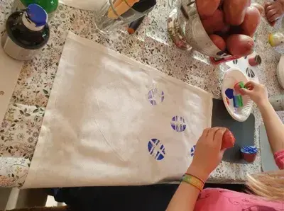 100 kr for barn som skal være med på potettrykk - inkludert materialer, saft og potetkake - du får med det du har laget hjem!