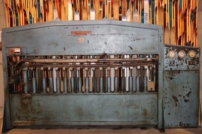 Simen Rustad skifabrikk ble lagt ned i 1980, men mange av fabrikkens maskiner og mye av dens utstyr lever videre på Rindal skimuseum.