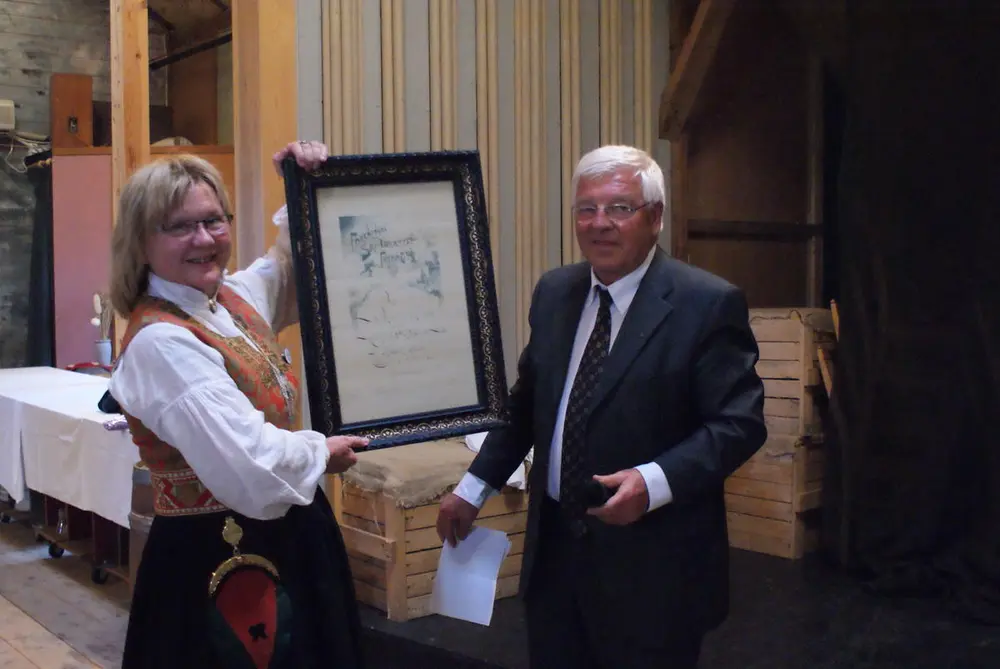 Kari-Elin Bolme Løfaldli og Simen Rustad ved åpningen av Rindal skimuseum i 2014. Rindal skimuseum
